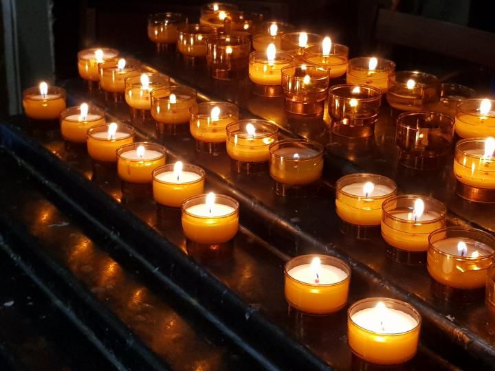 Dans la partie gauche inférieure du tableau, un personnage tonsuré, tient un bougeoir, il est agenouillé, de dos. A l'extrémité droite du tableau apparaît le col d'un cygne qui rappelle le cygnesauvage que le saint réussit à apprivoiser et qui annoncera la fin prochaine de son maître en refusant de s'alimenter.