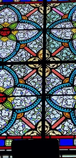 La place occupée ici par la Vierge n'est pas le fait du hasard puisqu'elleévoque, certes de façon discrète, la prééminence qu'elle détient aujourd'huidans l'église. Cette scène résume à elle seule en quelque sorte l'histoire de la paroisse, en réconciliant si besoin était tous les saintsprotagonistes. Le décor monumental de l'édifice emprunte son langage au répertoire de l'art antique classique, en utilisant des formes et desmotifs souvent employés (rinceaux, entrelacs, cartouches…).
